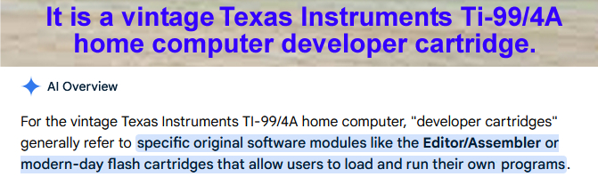 The image in question is a developer cartridge for the TI-99/4A, which was recognized